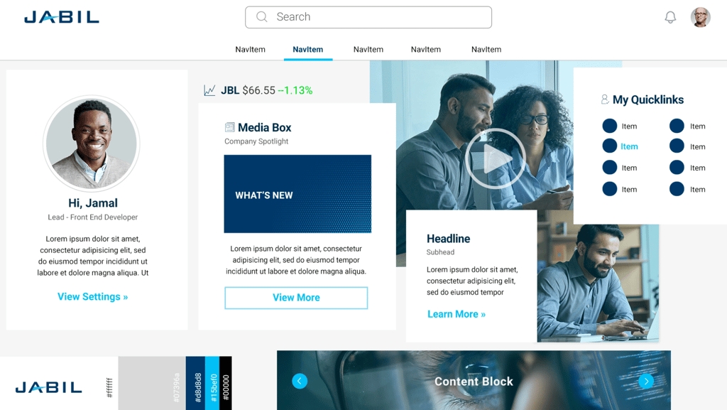 Jabil needed to modernize their corporate intranet to support strategic growth while addressing navigation confusion, poor search functionality, and limited personalization.
